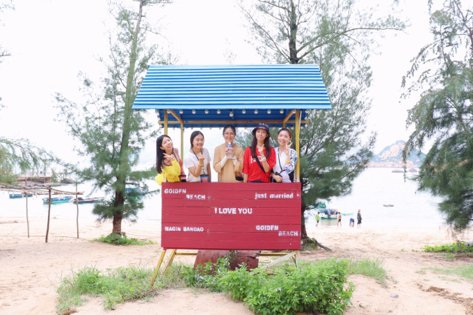 我们来到那琴半岛,忘记提前在旅游平台上买票了,所以到了现场买票,人不算很多。现场买票4个成人票,1个学生票,加起来一共是441元。租了两个柜子,要给押金100/个,再给租金30/个,都是大的柜子。柜子有分大中小,我们东西不多,但是没想到柜子还挺大的,就租了两个。如果东西不多,大家组一个打柜子即可。柜子就在入门处,把东西存放好就可以去拍照啦。