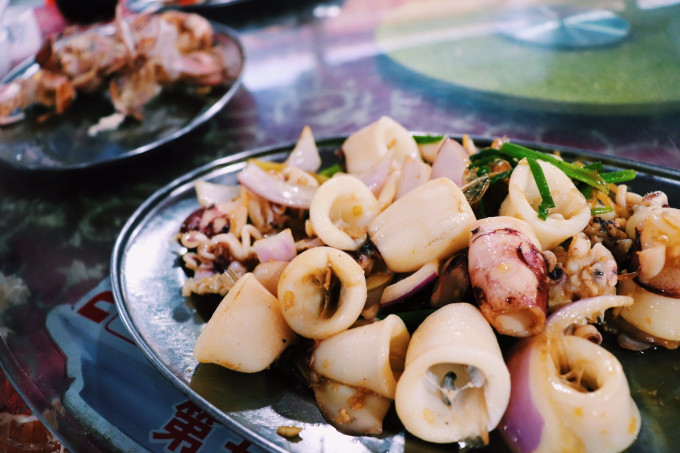 由于西岸酒店就在进沙咀村的拐角处,所以我们最后选择了在“胜海度假屋大排档”吃晚饭。给游泳圈打好气,看了会儿延禧攻略就出发了。沿着村路进去,一条直路,大概走5分钟,沿路看到很多饭店的指引牌,我们就直奔胜海了。 我们一共点了5个海鲜再加一个青菜,虾蟹啥的都是往最贵的点,才吃了285元。肉质很鲜嫩,我的妈,我好想长住在海边吃海鲜长大啊!!