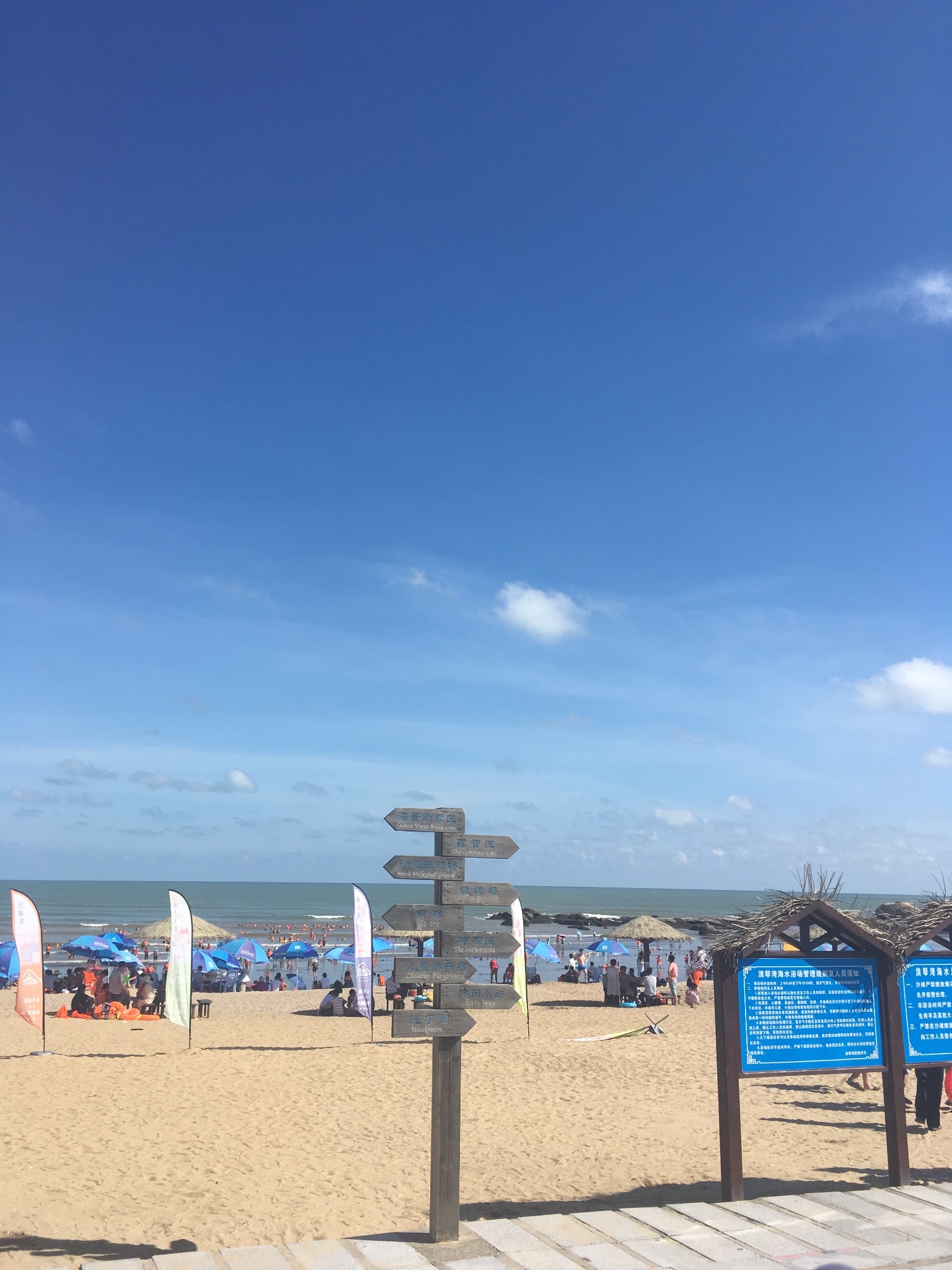 行李:泳衣、泳圈、换洗衣服、毛巾、出差专用洗漱包、当然还少不了大草帽、丝巾、防晒霜还有沙滩必备拖鞋。忘记了帮小朋友带沙滩玩具,导致后来在景区附近稍高价购买。