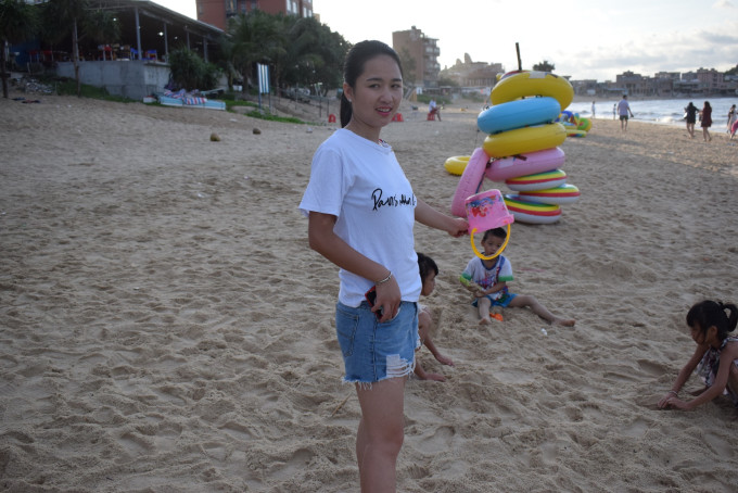 3.在沙咀村的免费海滩,如果没有带游泳圈,可以租。我们当时租了两个小的,开价15元,还到了10块。