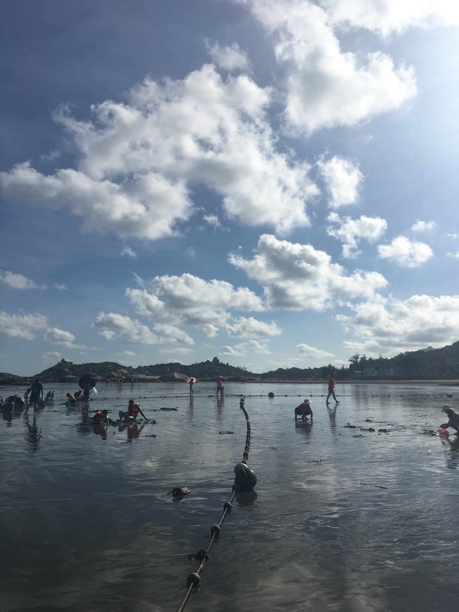 浪琴湾浪琴湾出来以后,怕小朋友感冒,直接回了客栈洗澡,满满的全是泥啊,无法直视。收拾完毕之后休息片刻,下楼享用晚餐。晚餐直接在碧涛轩大排档,客栈老板开的餐厅,给了点优惠,点一斤螃蟹,一斤花甲,半斤鱼,一个番薯叶,一瓶大雪碧,加上茶位和米饭,共计155元。中午的濑尿虾小朋友们吃了一只都不吃了,晚上的螃蟹那是都抢着吃的。和中午那顿比起来,真是好的太多太多了。挺值得推荐的,实惠而且就在海边,听着涛声,吹着海风,享用着晚餐。