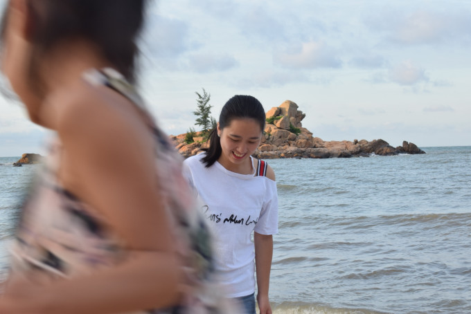 泊好车,搬上行李进入房间,everybody换装之后,开车向浪琴湾。开到浪琴湾景区门口发现不好停车,有大型停车场(20元);转进去发现太多车,要停在非常里面才有车位,于是放弃出来,老公把我们先放下了买票,然后倒回客栈的半路去停车(之前开车有看到一个适合停车的地方,有车停,还免费)。于是我们先下车买好票【全票15元,半票(1.5M以下或低于18岁)8元,1.2M或6岁以下免费,所以超高的小朋友记得带身份证或者学生证哦】,等老公泊完车来汇合,停车位置到景区门口大概步行(10分钟)。在这十分钟里,小朋友急不可耐想冲破关卡进去沙滩浪~~~
