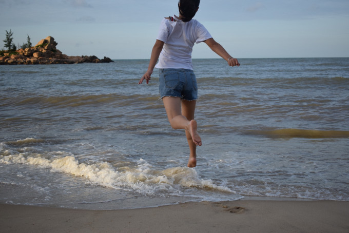 太阳升起来,温度慢慢高起来了;光着脚丫慢慢走进大海......